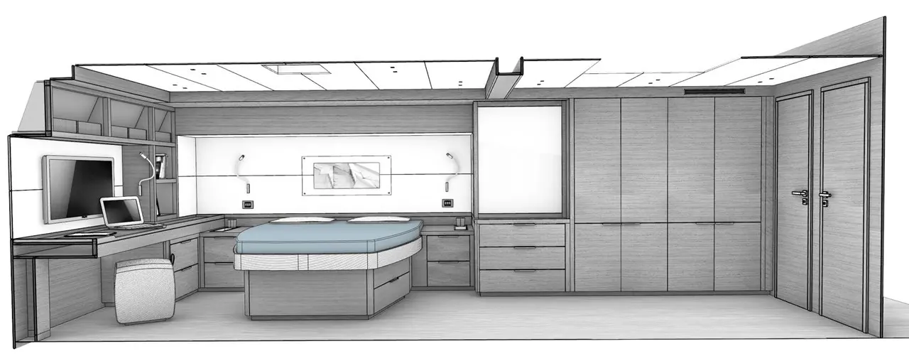 One of the biggest changes against predecessors are new design of transoms which are now separate living areas, rather than just a walkabout space. With upgraded Nauta design interior, high-quality lifestyle expected in the outdoors will be enhanced once entering the interior. Harmonious lighting as on Sixty5 and Seventy7 with lots of natural light, natural hues and by succesfully using horizontal lines that give the sense of fluidity, you will find relaxing, sleeping and dining a fine expeirence even if indoors.